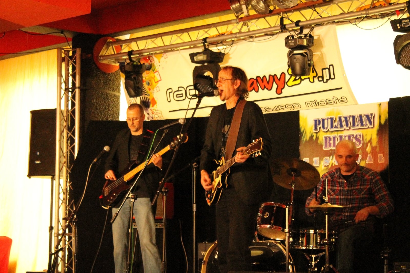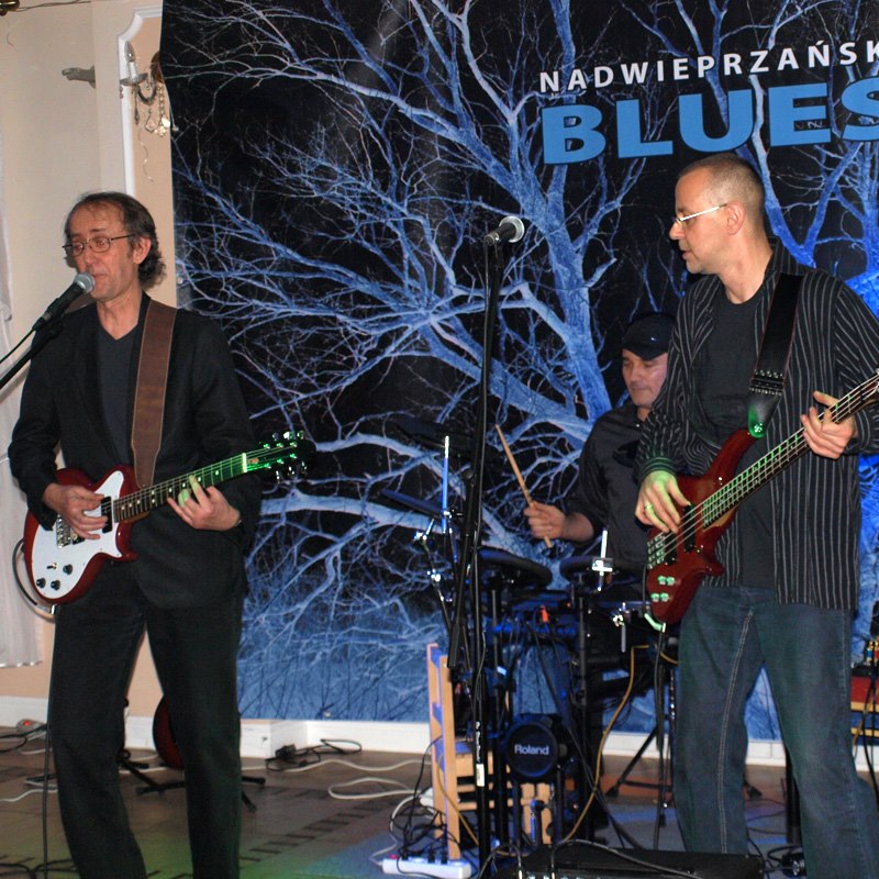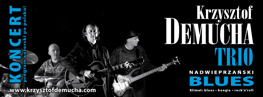 Nadwieprzański Blues to jest całościowa koncepcja Krzysztofa Demuchy. Pisał muzykę i prawie wszystkie teksty. Jako zawodowy grafik stworzył także całą oprawę wizualną zespołu. Strona internetowa, grafiki reklamowe, plakaty. Przykłady plączą się w moim tekście, a więcej zobaczyć można na www.krzysztofdemucha.com. KD: „Zrobiliśmy duży baner z takim drzewem. To drzewo to też nasze lokalne. Jak się jedzie przez Jacek na dolną Łuckę było takie olbrzymie drzewo, zrobiłem zdjęcie i świetnie nam przypasowało. Na koncercie wyglądało jakbyśmy pod nim grali. Na nasz pierwszy koncert jako zespół w Starej Łaźni już go ze sobą mieliśmy. Potem kilka razy w Łaźni udało się zagrać.” Od grafik przeszliśmy do koncertów. KRZYSZTOF DEMUCHA TRIO nie mieli spektakularnych wyjazdów w najdalsze rejony Polski. Zrzućmy to na karb tego, że nie istnieli zbyt długo. bo kilka lat od 2010 roku. Pokręcili się jednak trochę ze swoją muzyką: Lublin, Lubartów, Puławy, Radzyń i inne okolice. 🙂 Krzysiek o koncertach: „W Puławach wystąpiliśmy kilka razy na przeglądzie w klubie Oskar. Jeździliśmy też tam na jamy. Kawał dobrej muzyki był w tym klubie grany. Kock, Końskowola, Piknik Motocyklowy Alwernii, trochę tego się nazbierało. Najlepiej chyba wspominam koncert na moją 50-tkę. Mieszkaliśmy jeszcze wtedy na wsi, więc zorganizowałem koncert na ganku. 🙂 Zjechała się rodzina bliższa i dalsza, znajomi ze wsi i nie tylko. Impreza świetna. Potem się okazało, że chłopy okoliczni otworzyli skrzynkę browara i pod remizą popijali słuchając naszej muzyki. 🙂 Koncerty załatwialiśmy sami. Nigdy jakiegoś menagera się nie dorobiliśmy.”
