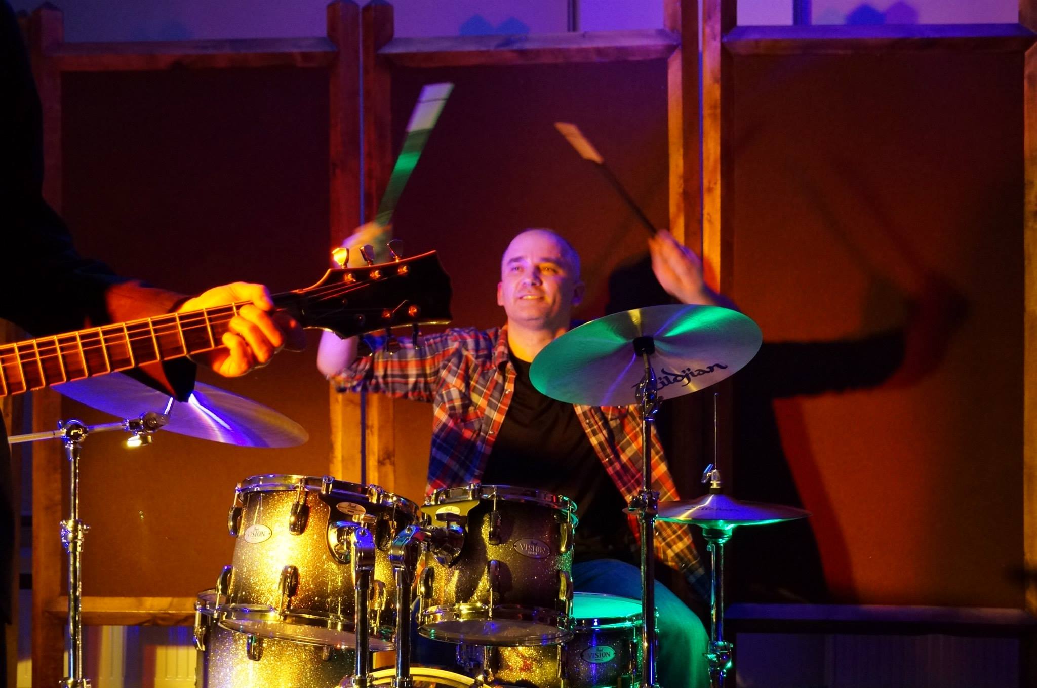 Przypominam, że jesteśmy w 2007 roku. Czasy niedoboru w sklepach się skończyły, nie trzeba sobie strugać gitary samemu, tak jak chociażby gitarzysta Ostoi Gieroja kilkanaście lat wcześniej. 🙂 Krzysztof jednak to pasjonat z pełnym zaangażowaniem. Zaczął remontować instrumenty, bo lubił to robić. Opowiada o tym z przejęciem i opowiadać może długo. Z tego co mówił coś tam podpatrzył u okolicznych lutników, ale generalnie jest samoukiem. Krzysiek: „Przede wszystkim zrozumiałem, że jeśli oddam kilka gitar z epoki do lutnika to nie udźwignę tego finansowo. Pomyślałem, że to nie może być takie trudne. Kupiłem jakieś pilniki, piłę japońską w Lidlu, część narzędzi sobie sam zrobiłem, trochę pożyczałem. Z czasem kupiłem kilka bardziej profesjonalnych sprzętów. Gitary znajdowałem w internecie. Pierwsze wziąłem stare Defile, bo jakoś mi tak pasowało: Nadwieprzański Blues grany na starych, polskich gitarach. Pierwszy koncert zagrałem na Defilach. Później je sprzedałem i pojawiały się inne. Pierwsza moja gitara w życiu to też był Defil kupiony w GSie. Tam gdzie dzisiaj jest Bank Spółdzielczy to kiedyś był sklep typu mydło i powidło. Tam ją trafiłem. Brejdak potem chyba ją zamienił na płytę Testu. 🙂 W Defilach gryfy to były przysłowiowe nogi od stołu, ale to zależało od egzemplarza. Zrywałem z nich podstrunnicę i równałem gryf i dopiero potem podstrunnica i progi. Progów to nabiłem w sumie hurtowe ilości. Jedne z pierwszych, późniejszych występów solo grałem na Framusach. Miałem już dwie, w razie jakby się rozstrajały. Jak się je podrobiło to fajnie brzmiały, blisko tego czego szukałem. Generalnie nazbierało się tych gitar trochę. Były różne Defile, Framusy, Hoyer, Rodebald. Były w różnym stanie, więc zrywałem podstrunnice, szlifowałem gryfy, wstawiałem pręty, wymieniałem mostki, wstawiałem pick upy, montowałem nowe klucze, ściągałem lakier i kładłem nowy. Zależy czego która wymagała. Ciągle pojawiały się nowe, bo odnawianie ich sprawiało mi przyjemność. Sprzedawałem je potem. Jednego Hoyera kupiła ode mnie Moriah Woods. Dokładnie ten egzemplarz, który był na naszych plakatach koncertowych i na stronie tytułowej witryny internetowej.” Krzysztof swoje gitary wystawiał w necie. Na youtube można znaleźć próbki brzmień jakie nagrywał. Nie będę tego tu wrzucał, bo to takie czysto techniczne filmiki, można sobie jednak na nich obejrzeć te odnowione wiosła. Fama po mieście poszła i Krzysztof pomagał także innym z ich instrumentami: „Waldkowi Dziurkowskiemu szlifowałem progi w Ibanezie i Harley Bentonie. Waldek to mój mistrz. Dzięki niemu i Quo Vadis w ogóle zainteresowałem się graniem na gitarze. Robiłem też inne, mniejsze naprawy na zlecenie.”