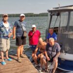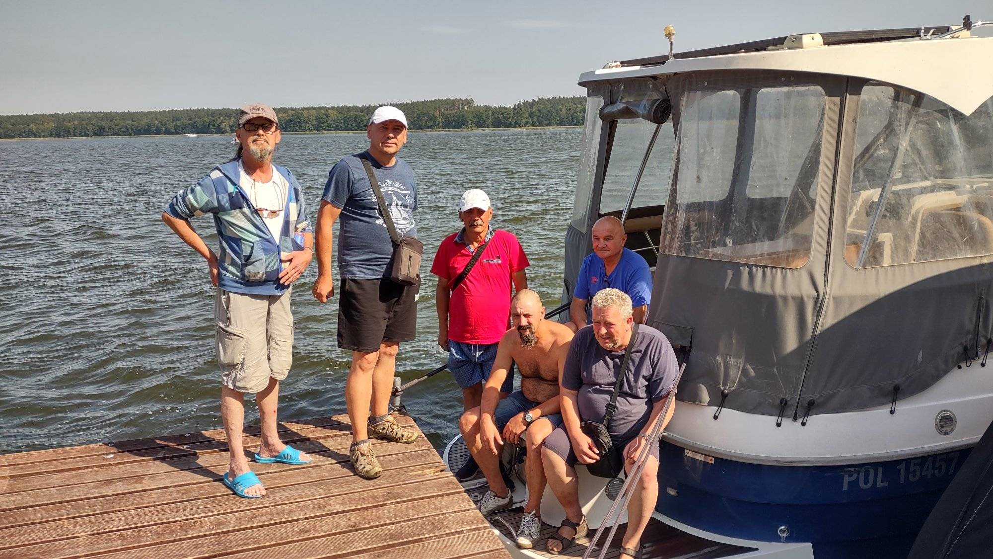 Skoro działalność SYNDROMU wyrosła na fundamencie muzyki żeglarskiej i wciąż mniej lub bardziej się wokół niej kręci, to wypadałoby liznąć żeglowania. I tutaj dochodzimy do fantastycznej sprawy. Panowie od kilku lat umawiają się razem i przez tydzień pływają jachtem motorowym po mazurskich jeziorach. (T): „Już kilka takich rejsów zaliczyliśmy i bardzo nam się to podoba. To takie nasze męskie wypady, same syndromy beczki. 🙂 Zaproponował nam takie wakacje Ludwik Rusznica, nasz przyjaciel i dobry duch zespołu. Grał z nami na perkusji jak Jurek miał problemy ze zdrowiem i kiedy potrzeba zawsze nas wspomoże. Okazało się, że jest żeglarzem i to z patentem. Zabrał nas kilka lat temu na wakacje na pokładzie Żurawinki i od tamtej pory co roku udaje się wyjechać na taki wypad. Przez tydzień mieszkamy na łódce, zawijamy na noc do różnych portów, muzykujemy i odpoczywamy. Któregoś razu spotkaliśmy nawet znany zespół szantowy na podobnym rejsie. To jest coś wspaniałego, bo nawet wielokrotnie rozmawialiśmy, że gramy dużo utworów o tematyce żeglarskiej, ale dopóki nie poznaliśmy pływania, to nie do końca byliśmy naturalni w tym, co robimy. Mamy teraz większą świadomość o czym śpiewamy. Planujemy już przyszłe rejsy.” (K): „Pływamy, z tym że nie po morzu. Póki co jesteśmy szuwarowo-bagienni.” 🙂 Szczerze mówiąc trochę zazdroszczę, zarówno przygody, jak i wspaniałej okazji do integracji i poprawienia atmosfery w kapeli.