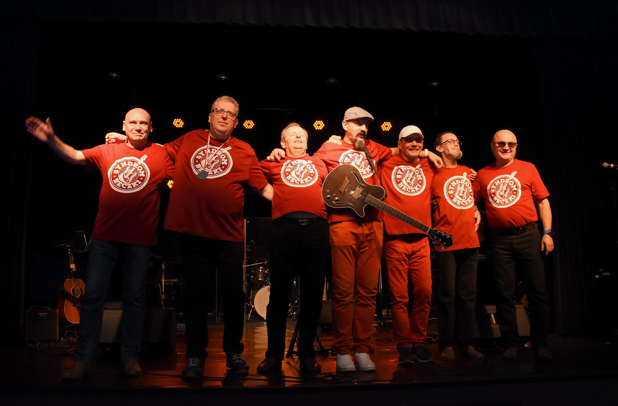 (K): „Ja dawno temu grałem z brejdakiem Tomkiem i z Jurkiem Liskiem w zespołach eventowych. Potem miałem długą przerwę, aż Andrzej zadzwonił do mnie, czy bym nie chciał zagrać koncertu w Białymstoku, na zastępstwo. To był kwiecień 2016 roku i już 10 lat się męczę z wariatami.” 🙂 (G): „Ja natomiast pod koniec 2015 roku zobaczyłem ogłoszenie w Lubartowiaku, że zespół szuka gitarzysty. Zgłosiłem się, bo myślałem, że to kapela weselna i sobie dorobię. 🙂 Okazało się inaczej, ale też zostałem.” 🙂 (T): „Grał z nami przez jakiś czas także Marek Kurek z Kamionki. Jego utwory do tej pory znajdują się w naszym repertuarze, a sam Marek jak potrzeba to wspomaga nas czasem na koncertach. Była w końcu taka sytuacja, że potrzebowaliśmy piątego człowieka na stałe. No to odbijaliśmy się delikatnie od ścian szukając gitarzysty albo klawiszowca. Tak jak brejdak wspomniał graliśmy kiedyś w zespole eventowym i padła taka myśl, że skoro nie możemy znaleźć takich instrumentalistów to może poszukajmy perkusisty, żeby siadł na moje miejsce, bo ja grałem wtedy na instrumentach perkusyjnych. I tu pojawił się Jurek i współpracujemy już ponad 5 lat. To rozwiązało w zasadzie wszystkie problemy, bo mamy w tym momencie i klawisz jak jest potrzebny i Gordon ma wsparcie na gitarze i mamy bębny. W zasadzie w tej chwili już niczego nam nie brakuje, może oprócz czasu.” I znów pociągnijmy sznurki, od ludzi do nazw kapel, żeby jeszcze bardziej zagęścić lubartowską siatkę muzyczną. 🙂 Wojciech Mazurkiewicz i Jan Iwanek obecnie grają w zespole Ucho Od Śledzia. Kazimierz Jarosiewicz i Waldemar Dziurkowski to członkowie legendarnego Quo Vadis, o których bardzo bogaty wpis znajdziecie na blogu. Znajdziecie też wpisy o dawnych zespołach Gordona, czyli Metaxie i Nazwie Zastrzeżonej. Tomasz Woźniak udzielał się dawno temu w zespole TIR. Jerzy Lisek natomiast bębnił swego czasu w Purple Haze, a razem ze swoim synem Kamilem tworzył Whatever.